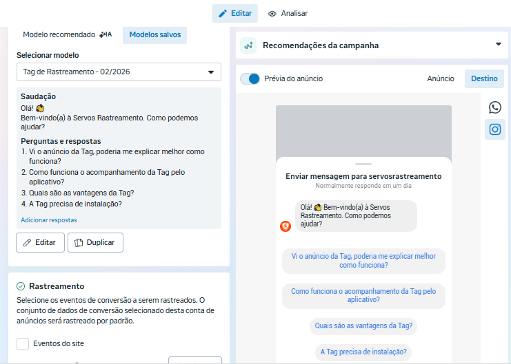 Frases do anúncio Rastreamento